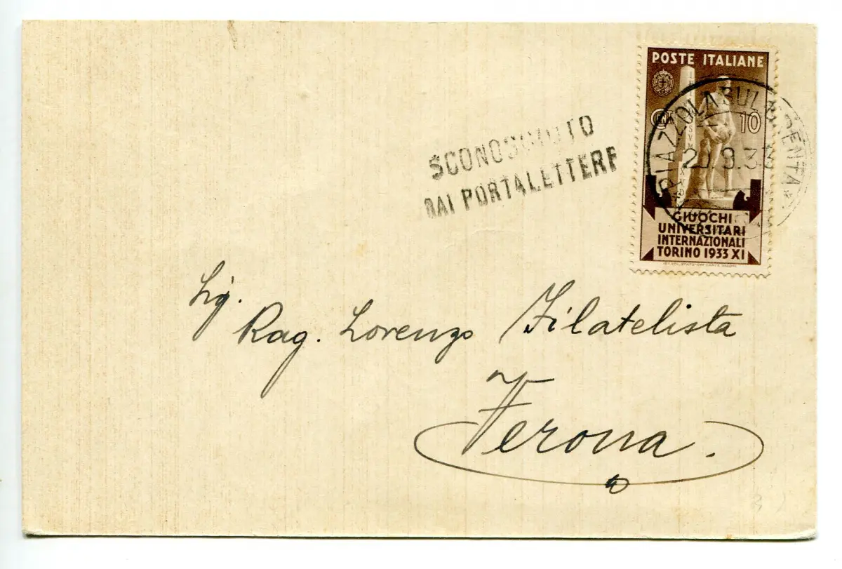 - Universitätsspiele Cent. 10 Nr. 341 isoliert auf Karton (Datum und Unterschrift) für Verona am 20.9.33 - neben Jahrgangsseite Unbekannt aus Brieftaschen Nr. 201/A