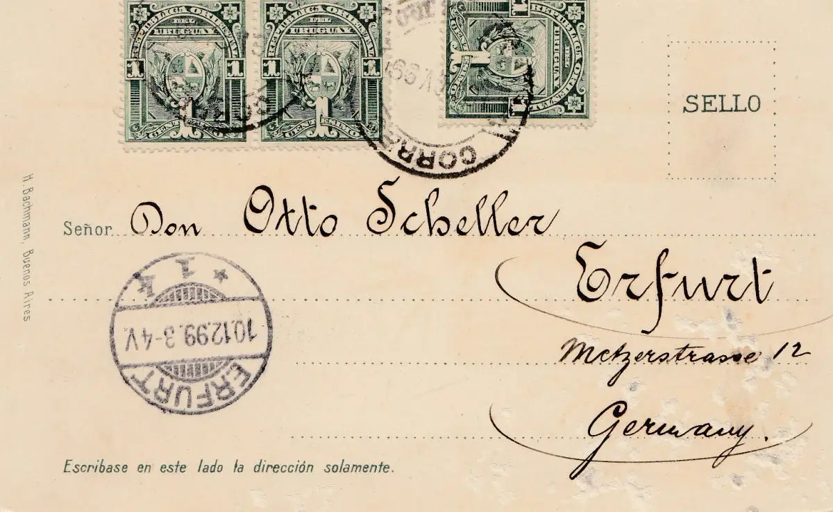 Uruguay 1899: Montevideo post card from Buenos Aires to Erfurt