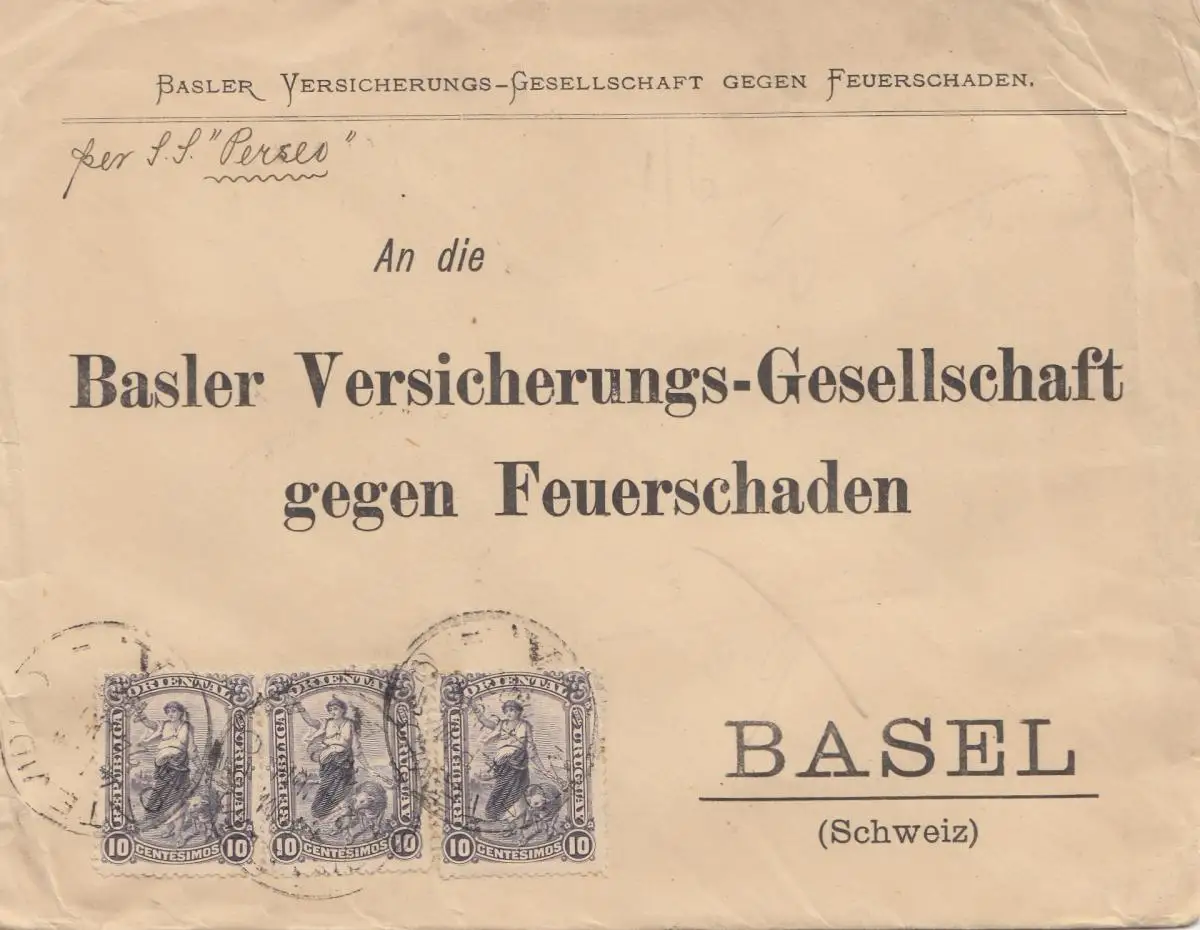 Uruguay 1902: Montevideo Basler Versicherung per SS Percei to Basel
