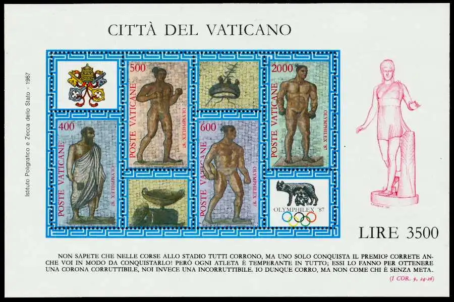 Blockausgabe Briefmarkenausstellung OLYMPHILEX 1987 (MichelNr.: 920, 921, 922, 923)