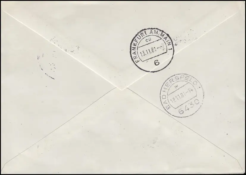 Express-Einschreiben an die Philatleie'81 an den Stand von VEB Philatelie Wermsdorf mit DDR-Mischfrankatur und Vignetten der Ausstellung "Philatelia'81 Frankfurt/Main" laut Abbildung.