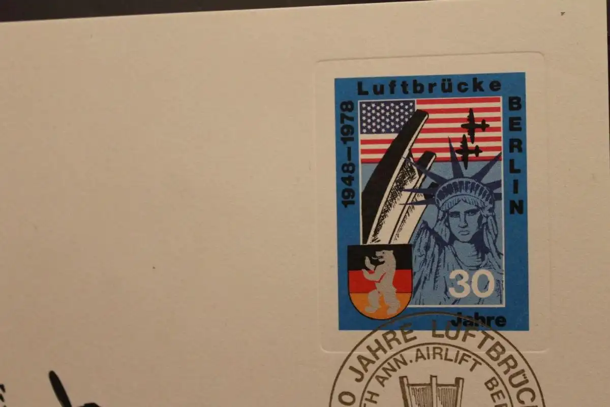 VIGNETTE, Berlin 1978; 30 Jahre Luftbrücke; Airlift Berlin, Kartonblock, ungezähnt, Goldstempel