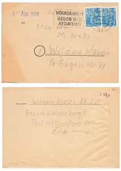 VOLKSKAMPF GEGEN DEN ATOMTOD Propaganda Stempel auf Brief o Berlin 5.8.1958