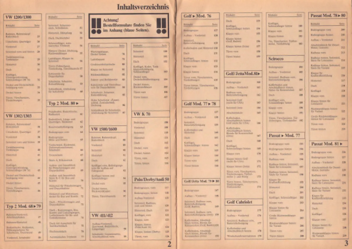 VW Blechteile Bildkatalog 1981