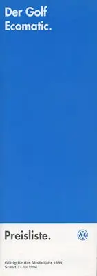 VW Golf 3 Ecomatic Preisliste 10.1994