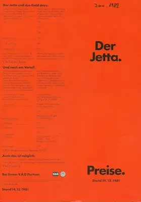 VW Jetta Preisliste 12.1981