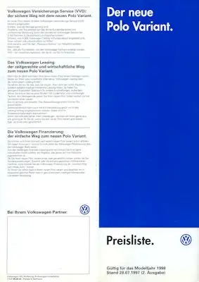 VW Polo 3 Variant Preisliste 7.1997