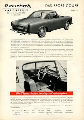 VW Rometsch Coupé und Cabriolet Prospekt 1961