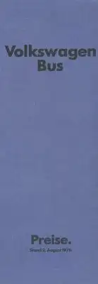 VW T 2 Bus Preisliste 8.1976
