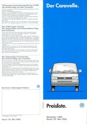 VW T 4 Caravelle Preisliste 5.1992 für 1993