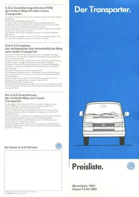 VW T 4 Transporter Preisliste 9.1990