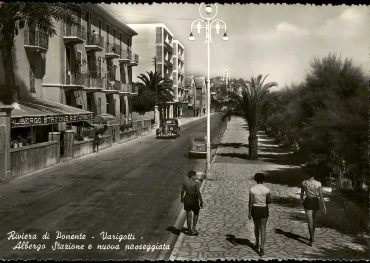 Varigotti ALBERGO STAZIONE RISTORANTE, Autos Straßen-Ansicht 1955