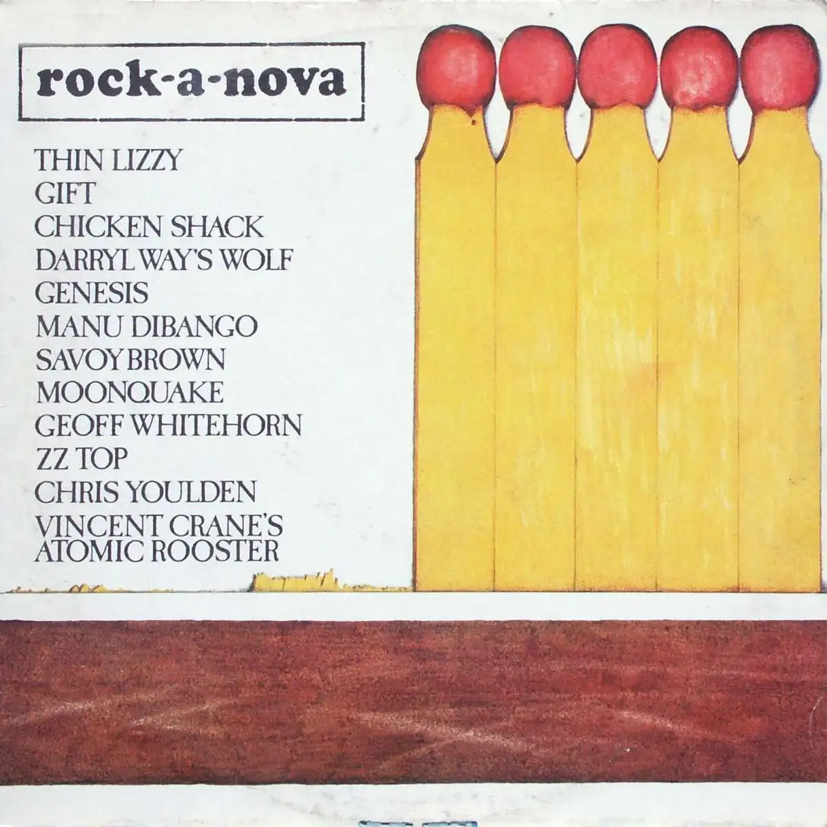 LP Album Various Artists - Rock-A-Nova, Zustand Platte VG+ Hülle VG; Made in Germany 1974 Nova 6.22005, Tracks Thin Lizzy - Little Darling 2:55, Gift - Got To Find A Way 6:44, Chicken Shack - Tutti Frutti 2:25, Darryl Way's Wolf - Two Sisters 4:10, Genesis - In The Wilderness 3:15, Manu Dibango - Pêpê Soup 4:00, Savoy Brown - Everybody Loves A Drinking Man 3:04, Moonquake - Remember 5:45, Geoff Whitehorn - Makin' It Funky 2:55, ZZ Top - La Grange 3:15, Chris Youlden - Conjure Wife 3:40, Vincent Crane's Atomic Rooster - Tell Your Story Sing Your Song 3:35