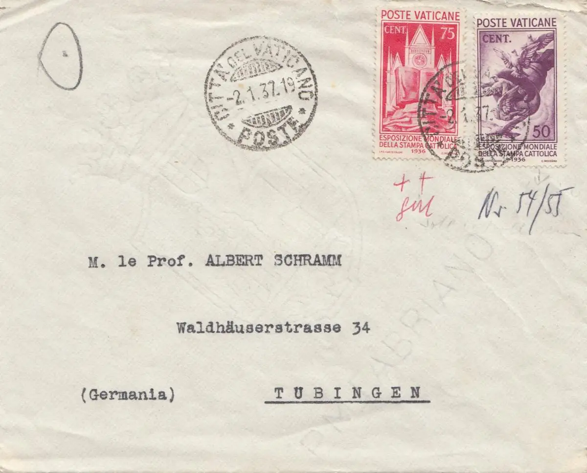 Vatikan: 1937: Brief nach Tübingen