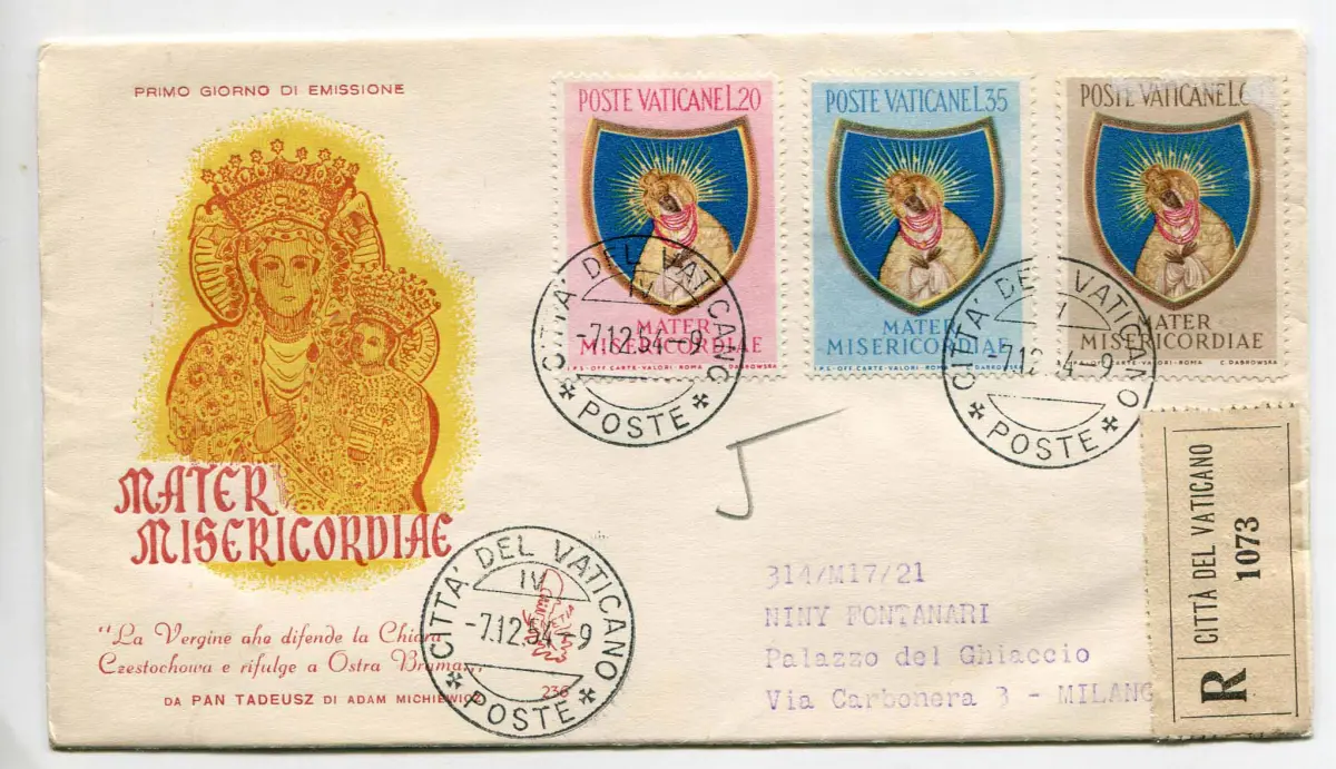 Umschlag - Vatikan - Verschluss Marianisches Jahr 189/191 auf Umschlag Racc. nach Mailand mit Ann. Ankunft - Ungewöhnlich Cod. 520/14