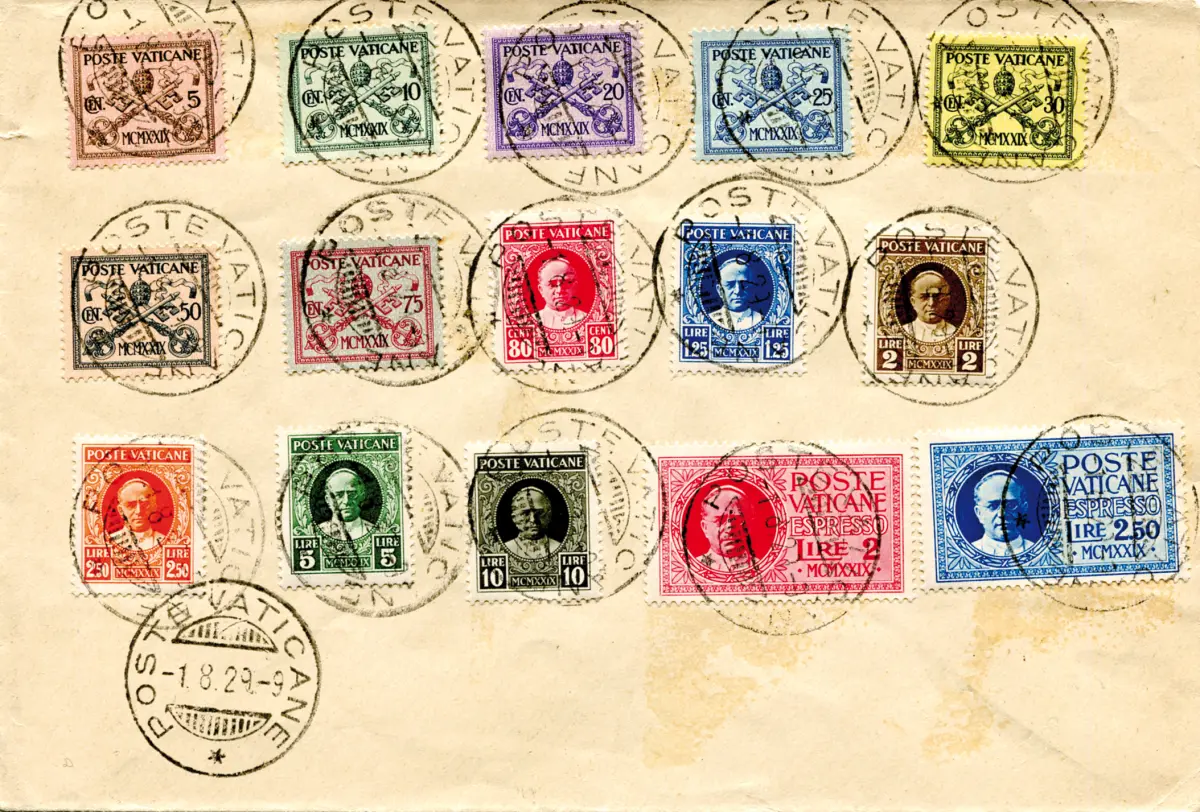 Vatikan - Vorläufer der kompletten Serie Conciliazione n. 1/13 + Espresso Nr. 1/2 auf Stornierungsumschlag Erstausgabetag, nicht gereist - Ungewöhnlich - Kat. euro 400 Cod. 453/16