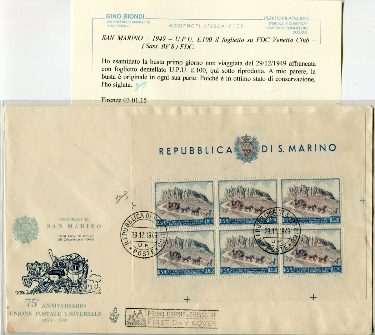 Venetia Club - U.P.U. Lire 100 Zettel auf Umschlag Umschlag - Venetia Club - U.P.U. 100 himmlische und graue Lire Bogen Nr. 8 auf Umschlag in sehr gutem Zustand, nicht gereist - Cert. Blond - Uncommon Cod. 774/L