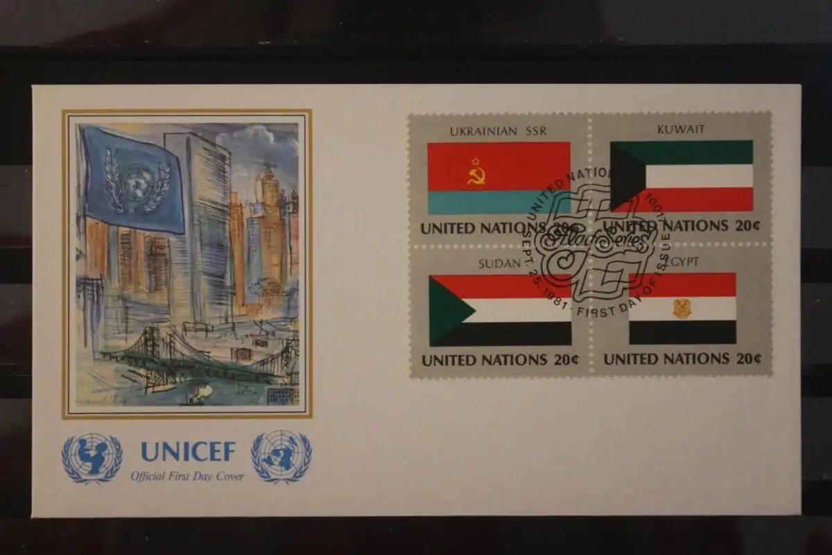 Vereinte Nationen N.Y. 1981, Flaggen; Viererblock FDC