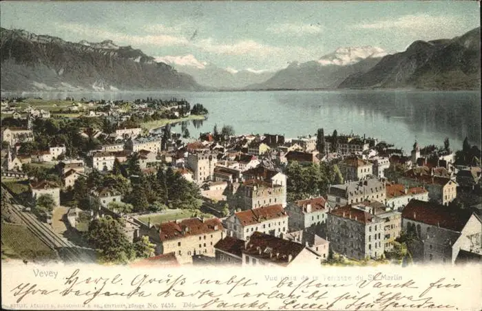 Vevey VD Totalansicht Vevey postalisch gelaufen bis 1920 Alte Ansichtskarte Postkarte hz Under