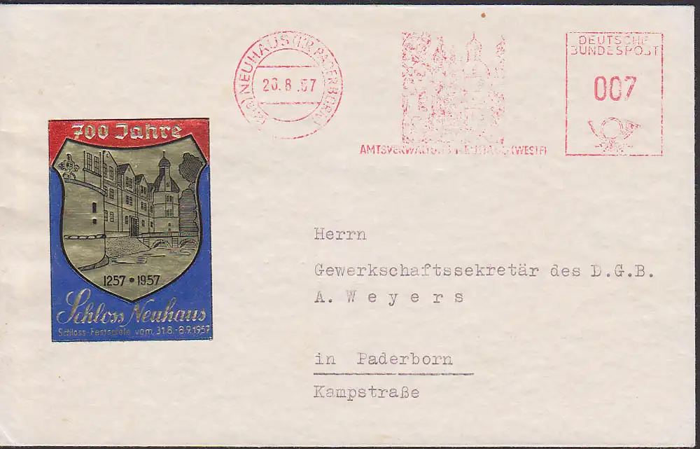 Vignette Schloss Neuhaus 700 Jahre, Bf mit AFS 26.8.57 Amtsverwaltung