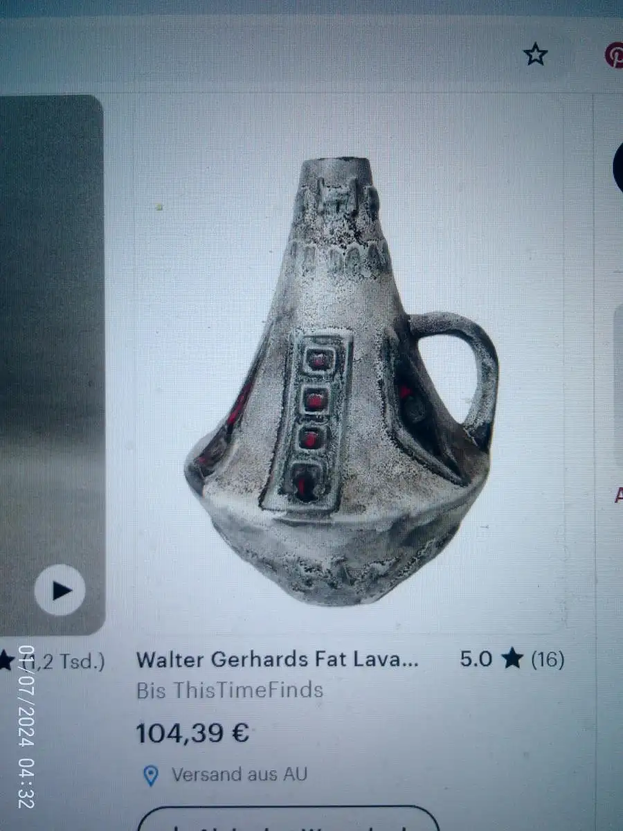 Vintage Walter Gerhards Keramik ,,Syrakus”, Formnummer S14 20 glänzend rot/aquagrün/grün blau innen, matt grau Fat Lava WGP, 1960er Jahre. Höhe 20 cm aus der Vitrine! mehr Originale : Artkunst24-de Herzlichen Glückwunsch! von 2019-2024 hast ...