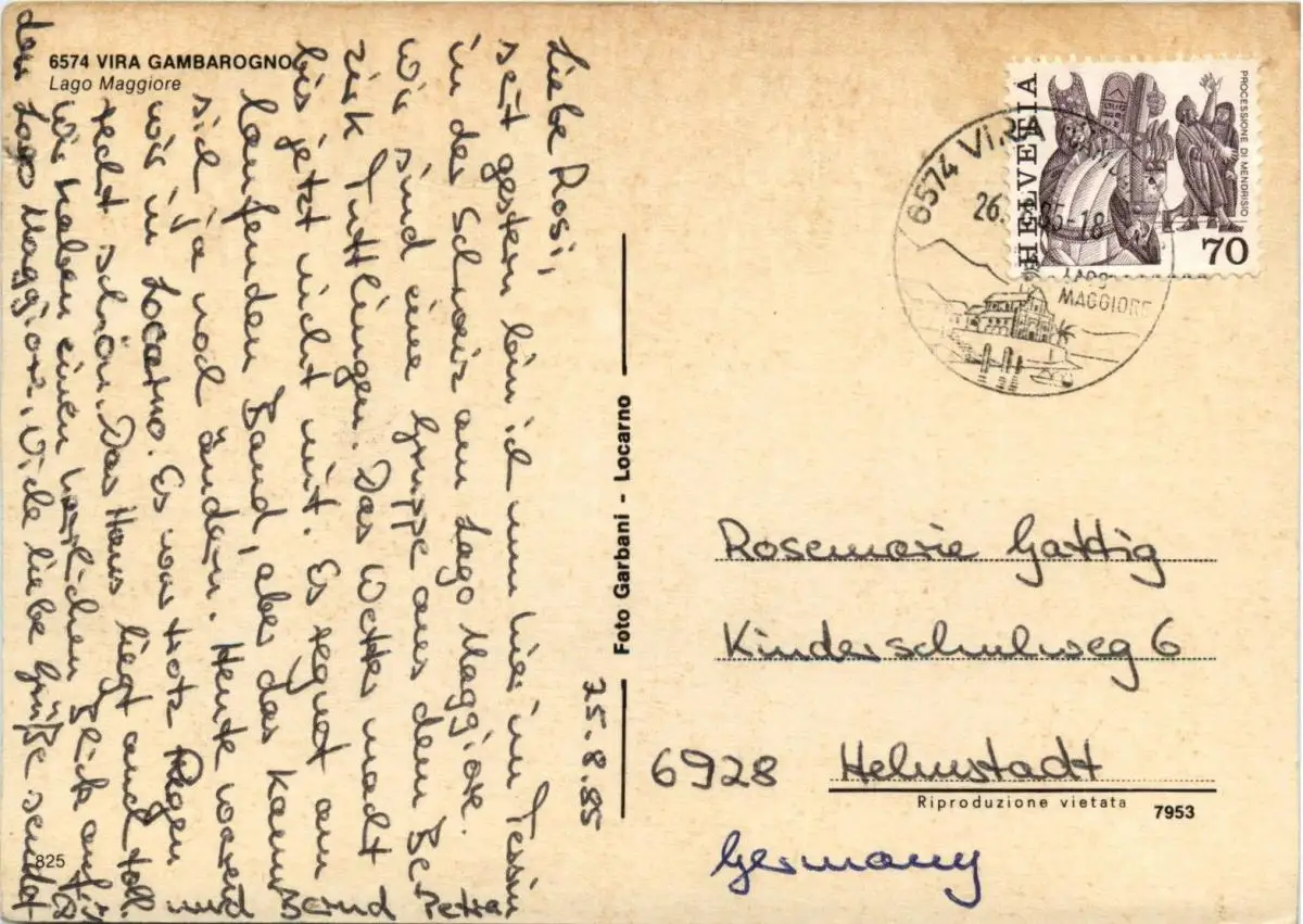 Danke. Alles Bestens. Können Sie mir allenfalls mitteilen, aus welchem Jahr die Postkarte stammt? Besten Dank.