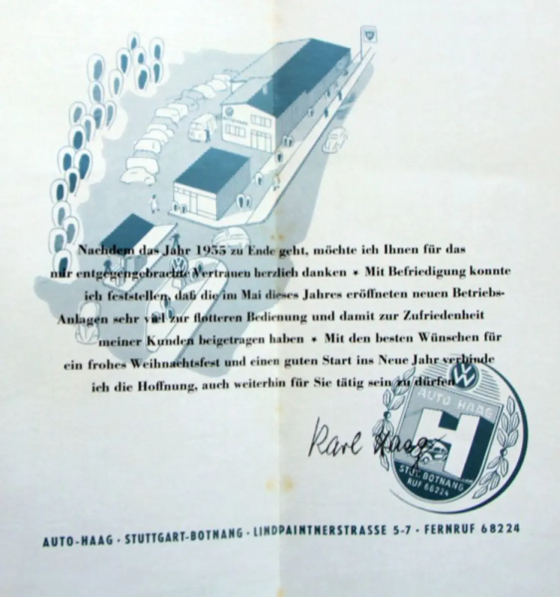 Volkswagen Käfer Modellprogramm 1956 "Auto-Haag Vertragswerkstatt" Automobilprospekt (10564)