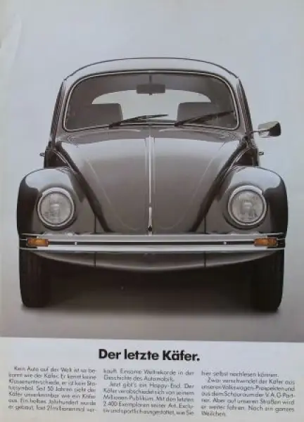 Volkswagen Käfer Modellprogramm 1985 "Der letzte Käfer" Automobilprospekt (3883)