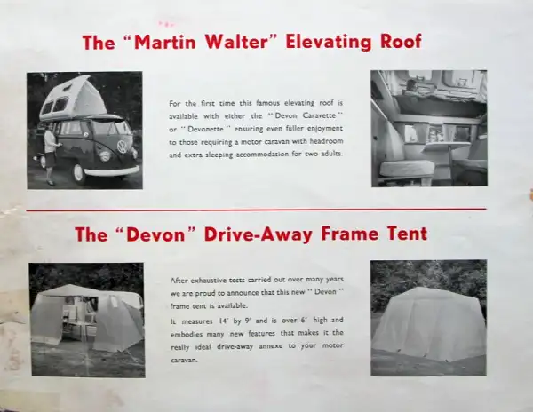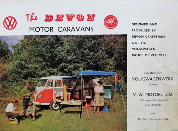 Volkswagen T1 Transporter Campingwagen Modellprogramm 1965 "Devon Caravans" Automobilprospekt (8631)
