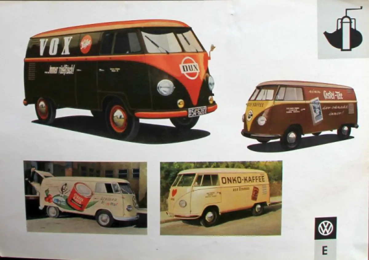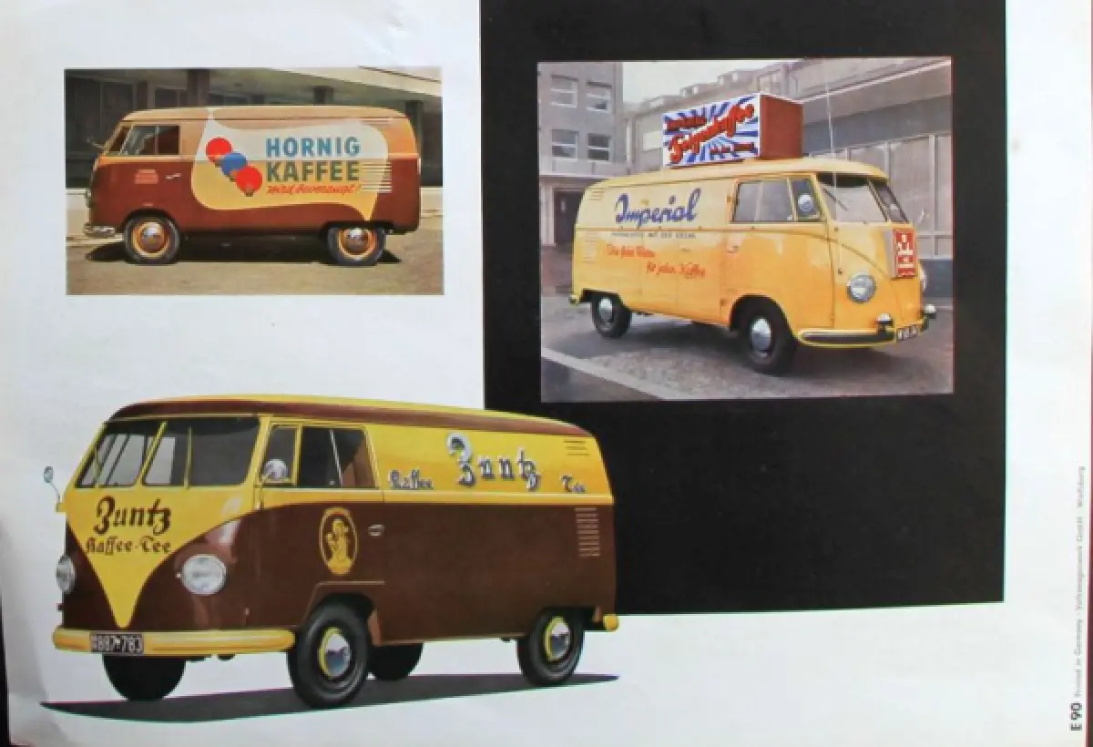 Volkswagen T1 Transporter Modellprogramm 1958 "Werbebeschriftungen" Automobilprospekt (0911)