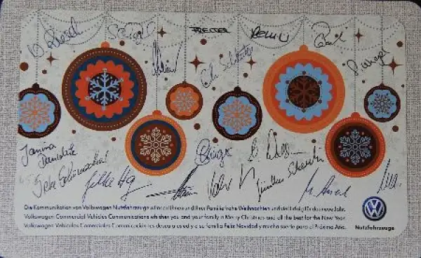 Zustand: 1 Volkswagen "Frohe Weihnachten" mitUnterschriften der Werbeabteilung
