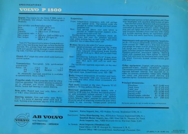 Volvo P 1800 Modellprogramm 1960 Automobilprospekt (4118)