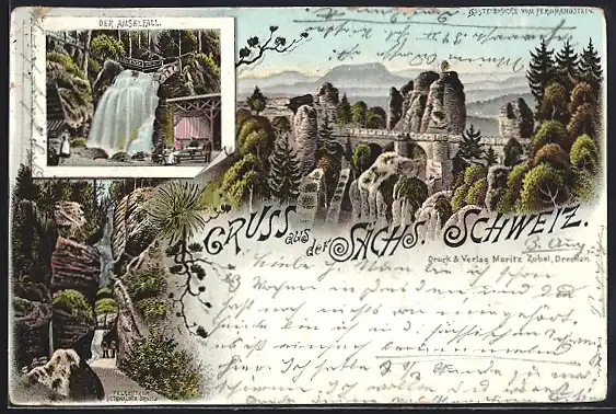 Vorläufer-AK Bastei /Sächs. Schweiz, 1894, Basteibrücke vom Ferdinandstein, Amselfall