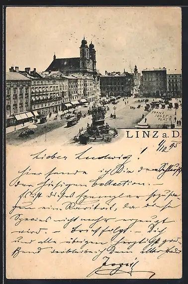 Vorläufer-AK Linz a. D., 1895, Blick auf den Franz-Josef-Platz