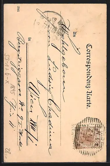 gelaufen 1895, Eckknicke re. oben und li. unten, guter Zustand