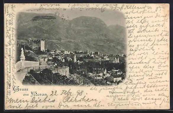 Vorläufer-AK Meran, 1895, Partie am Tapeinerweg