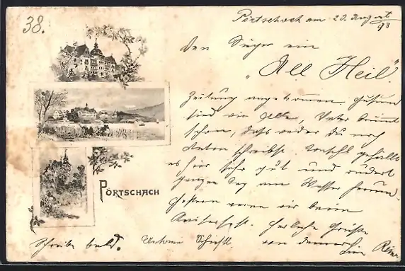 Vorläufer-AK Pörtschach, 1894, Blick auf verschiedene Gebäude