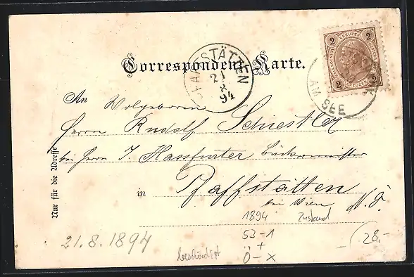 alte Ansichtskarte, gelaufen 1894, rückseitig Oberflächenschaden, Eckknick li. unten, Bugspurenli. oben und re. vertikal