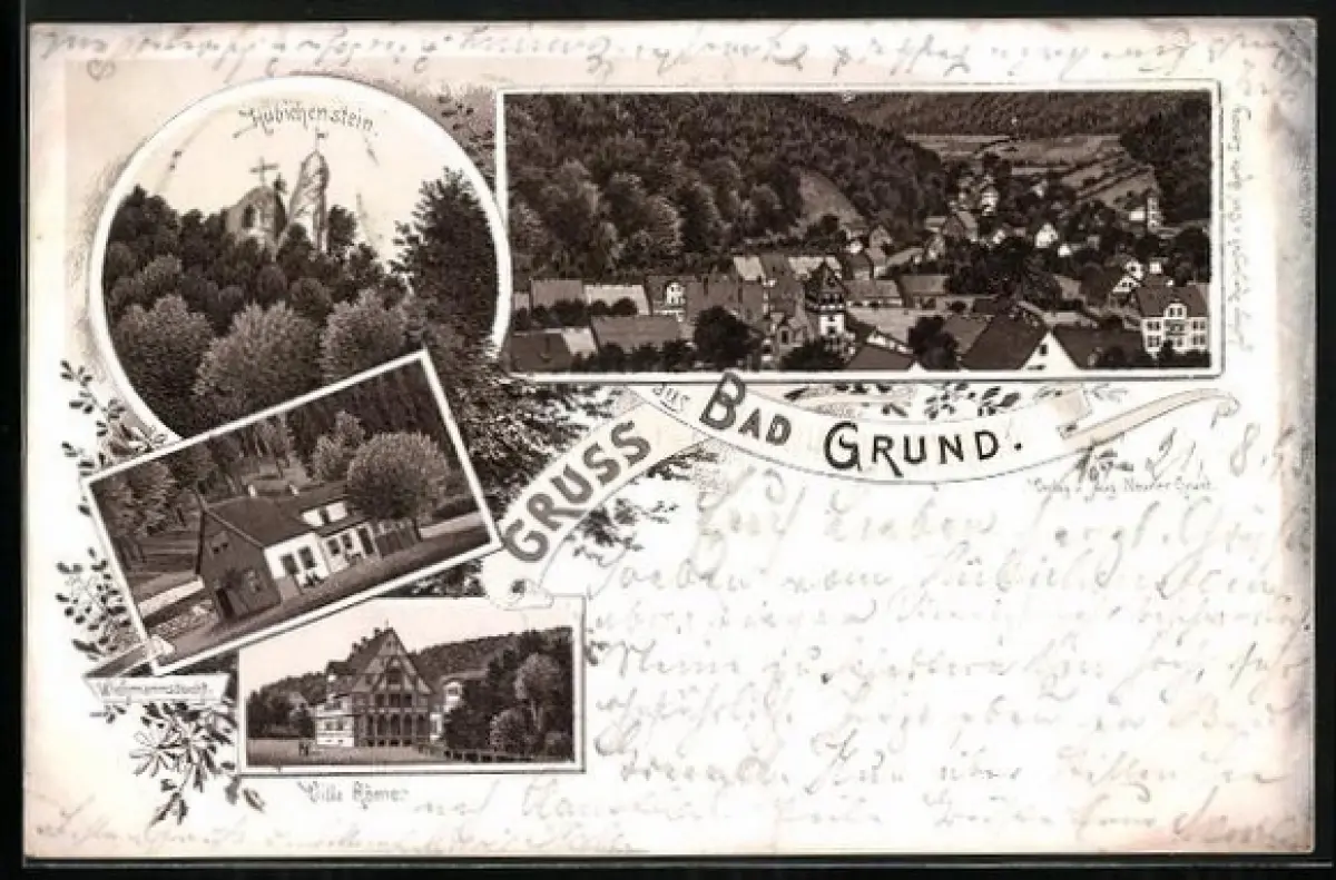 Vorläufer-Lithographie Bad Grund, 1895, Hübichenstein, Wichmannsbucht, Villa Römer, Ortsansicht