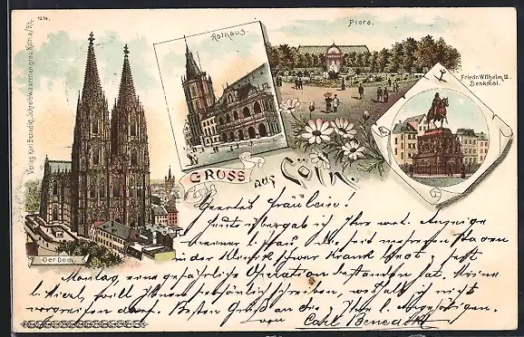 Vorläufer-Lithographie Cöln, 1894, Dom, Rathaus, Flora