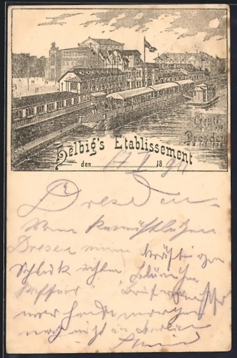 Vorläufer-Lithographie Dresden, 1894, Helbigs Etablissement, Dampfer