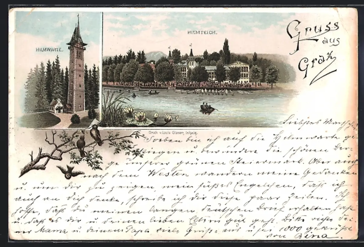 Vorläufer-Lithographie Graz, 1894, Hilmwarte, Hilmteich