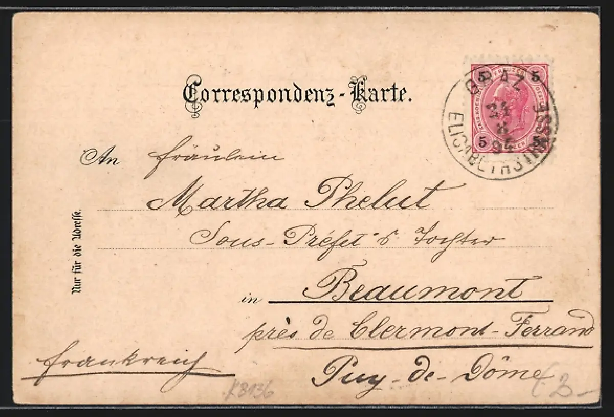 gelaufen 1894, Eckknicke oben u. li. unten, guter Zustand
