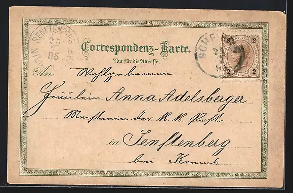 gelaufen 1895, Eckknick li. unten, guter Zustand