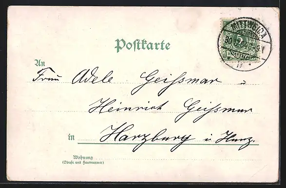 gelaufen 1894, Eckknicke li., Stempelspur, guter Zustand