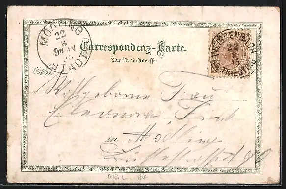 gelaufen 1895, Eckknick und Bugspur li. oben, kleiner Einriss oben li., guter Zustand