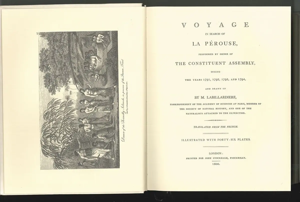 Amsterdam/New York, N. Israel/Da Capo Press (1971). (Faksimile d. Ausgabe: London, Stockdale 1800). Translated from the French. 8°. XVIII, 476 S., 65 S. (Appendix) mit 1 gefalt. Karte u. zahlr. Abb. OKunstLdr.-Bd. mit Deckel- u. Rückenschildchen. Sehr gut erhalten. - (Bibliotheca Australiana #67)