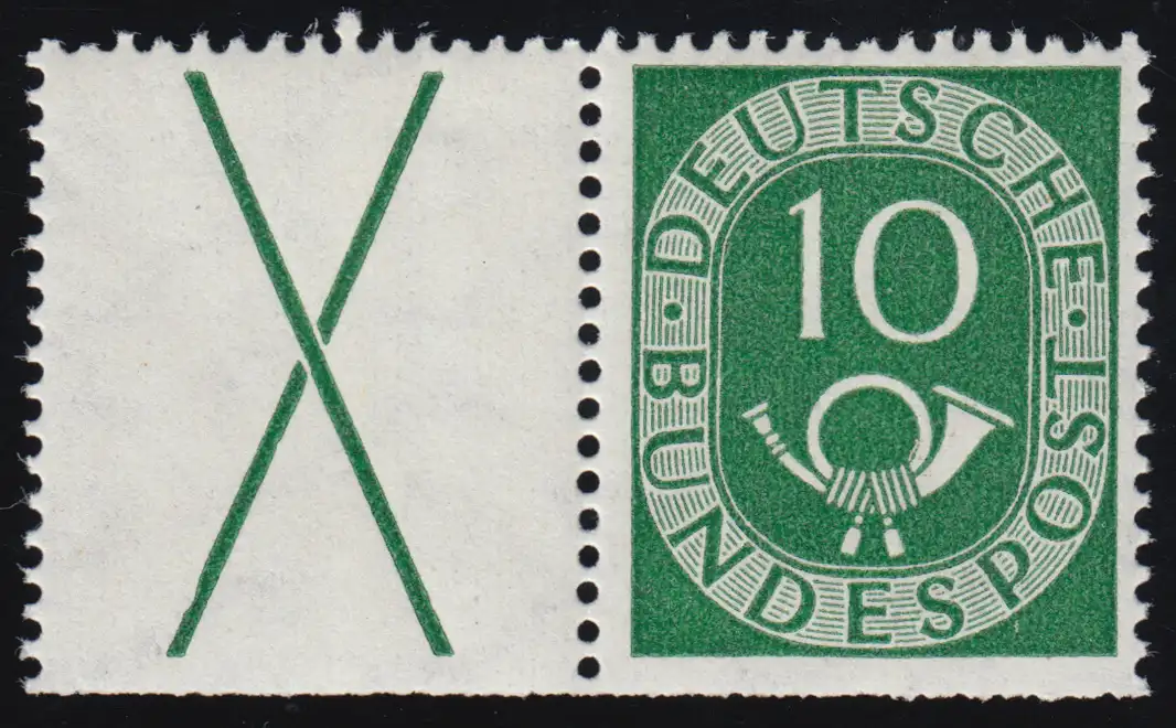 W 1 Zusammendruck Posthorn X+10, mit PLF I Delle im Kreuz, Heftchenzähnung, **