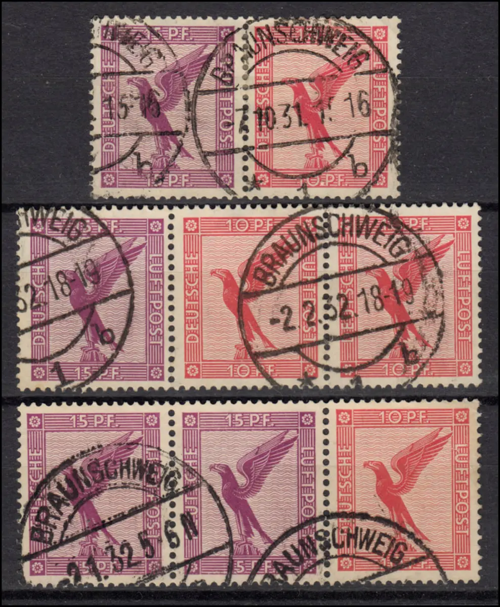 W 22 Flugpost in drei Varianten, gestempelt O Braunschweig