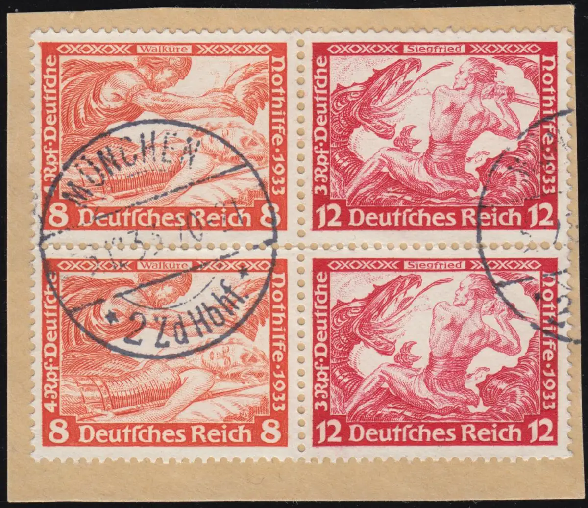 W57 Nothilfe/Wagner-ZD 8/12 Pf. zweimal im Vbl. auf Briefstück MÜNCHEN 5.12.33